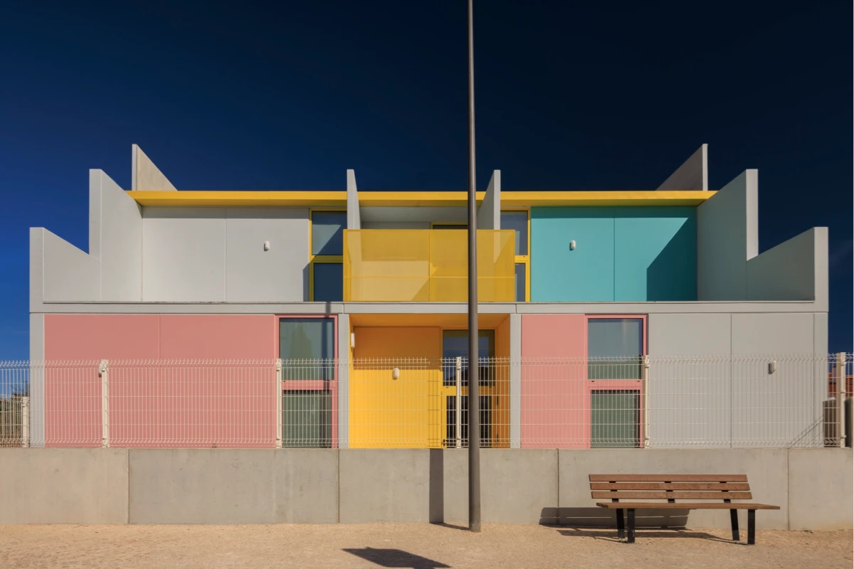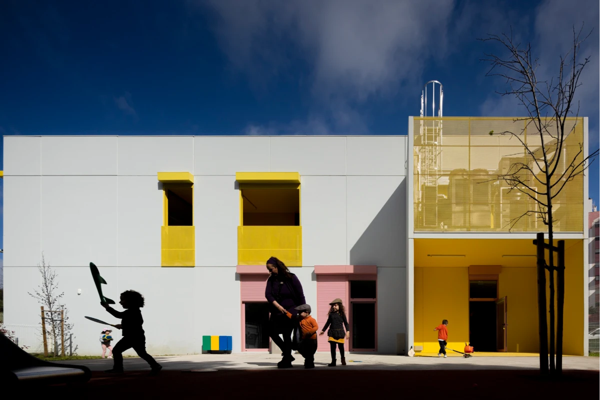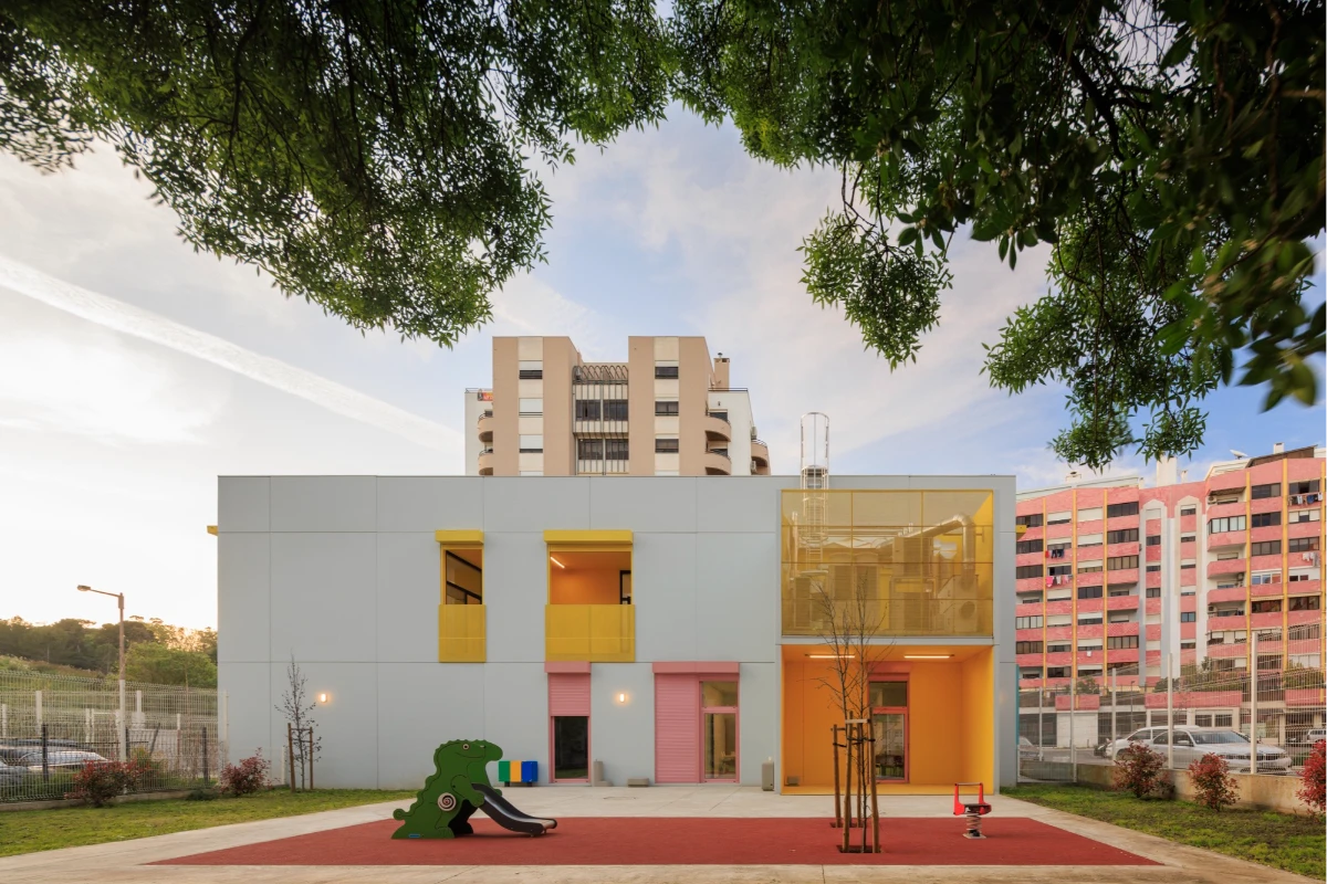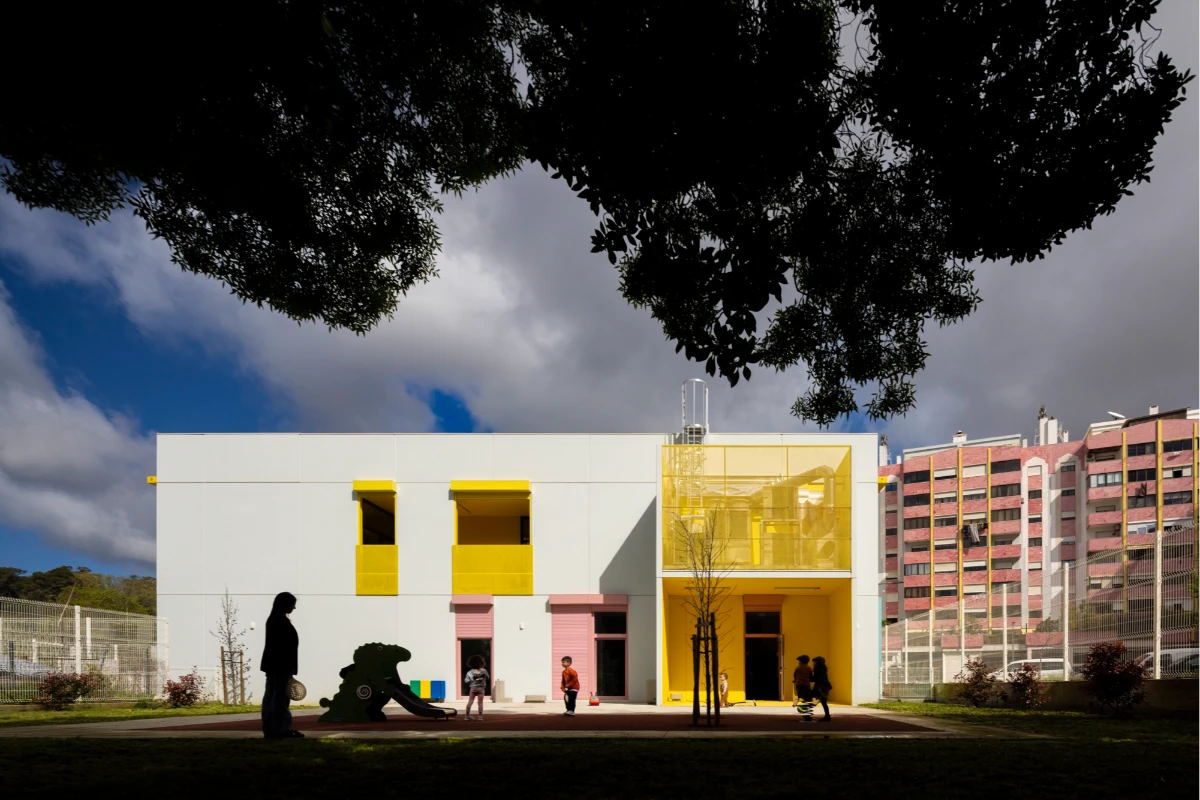 The buildings emerged in response to a public initiative project for the construction of kindergartens in various areas in Lisbon, through a competition launched by the Municipality. The starting point was a standardized solution that allowed for economic intervention, quick execution, and the creation of an identifiable image, making these facilities recognizable throughout the city.