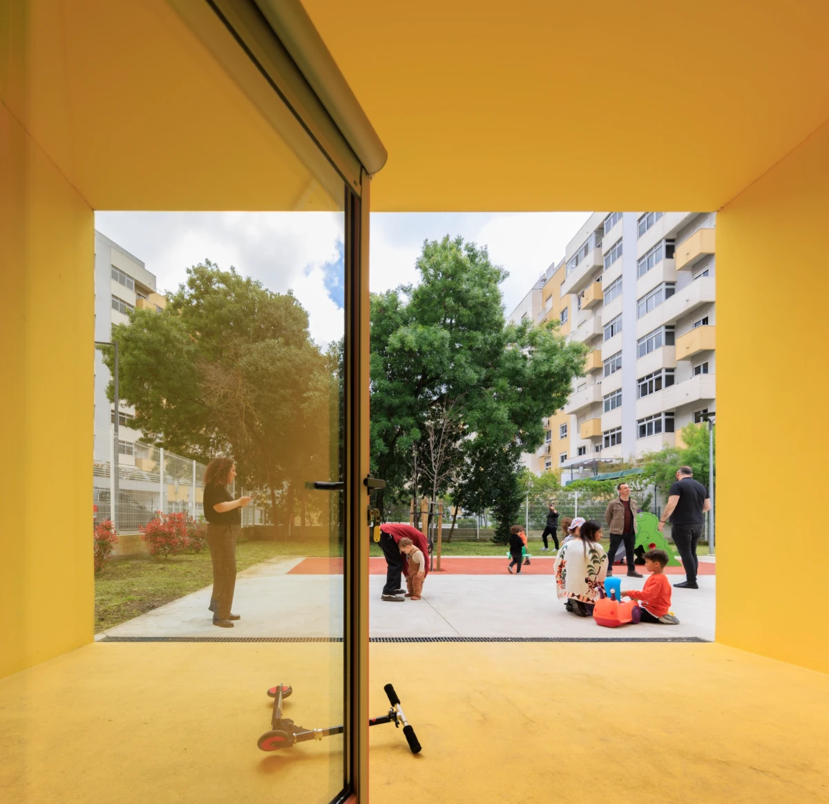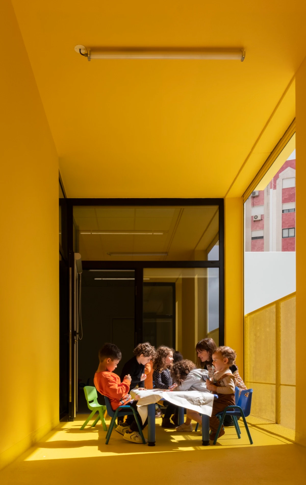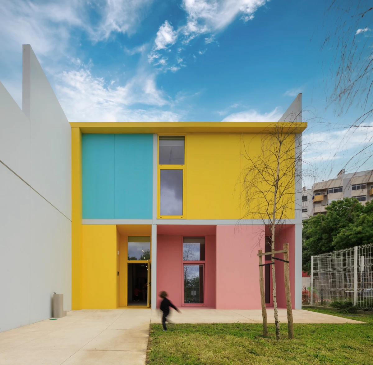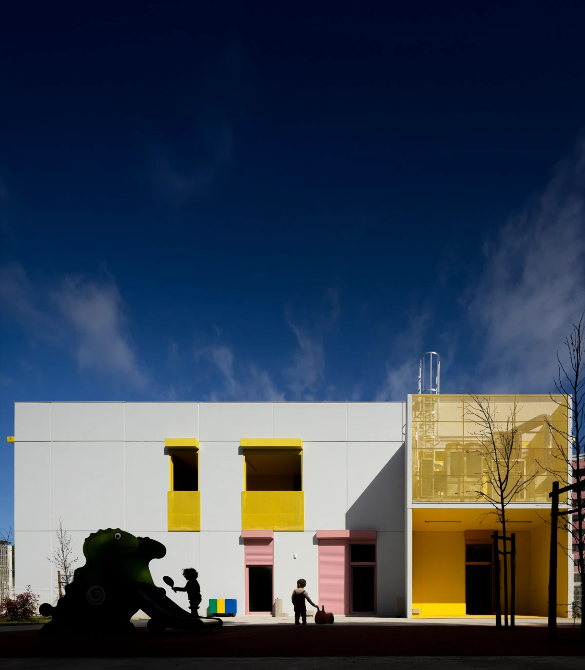 The buildings emerged in response to a public initiative project for the construction of kindergartens in various areas in Lisbon, through a competition launched by the Municipality. The starting point was a standardized solution that allowed for economic intervention, quick execution, and the creation of an identifiable image, making these facilities recognizable throughout the city.