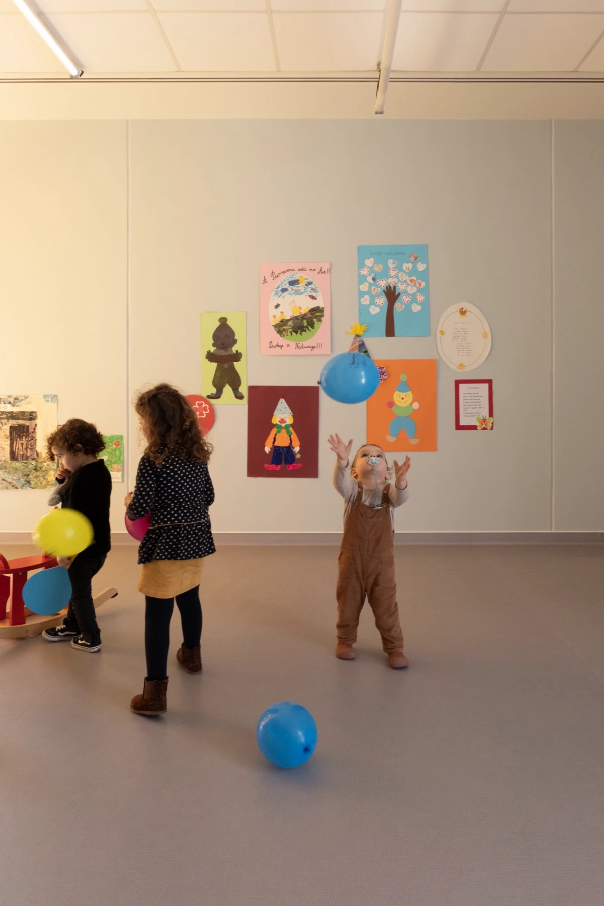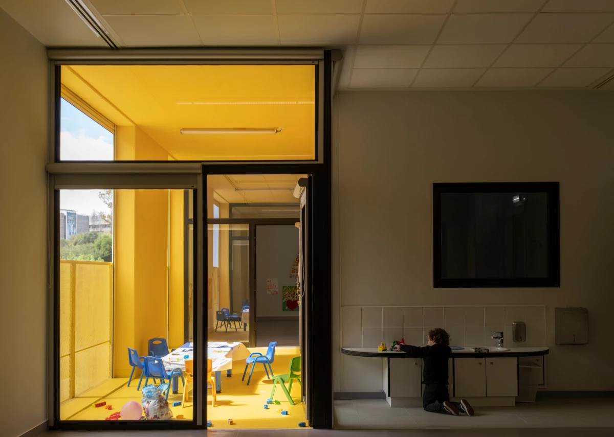 The nurseries are distributed across two floors, making them more compact in terms of footprint to address the limited space of the plots (all located in consolidated urban areas) and to maximize external space for recreational areas. The essential service areas (kitchen, administrative zone, laundry, etc.) are situated on the ground floor, while the various activity rooms for children are spread across both floors. All these rooms have direct access to the outside – on the ground floor, to the playground; and on the upper floor, through terraces.