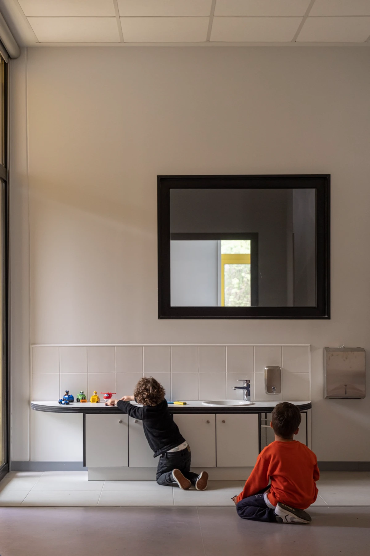 All the structural components of these buildings, including the foundations, were prefabricated in a factory under controlled conditions. They were then assembled on-site within a few days. These prefabricated components not only form the structure of the building but also define the facades, floors, and interior compartments. This approach allowed for a faster and more controlled construction process, avoiding on-site concreting, thus reducing waste, noise, and dust. The goal was to increase the city’s network of public kindergartens without disrupting the surrounding neighbourhood during construction. Both the process and the result were equally important in achieving this objective.
