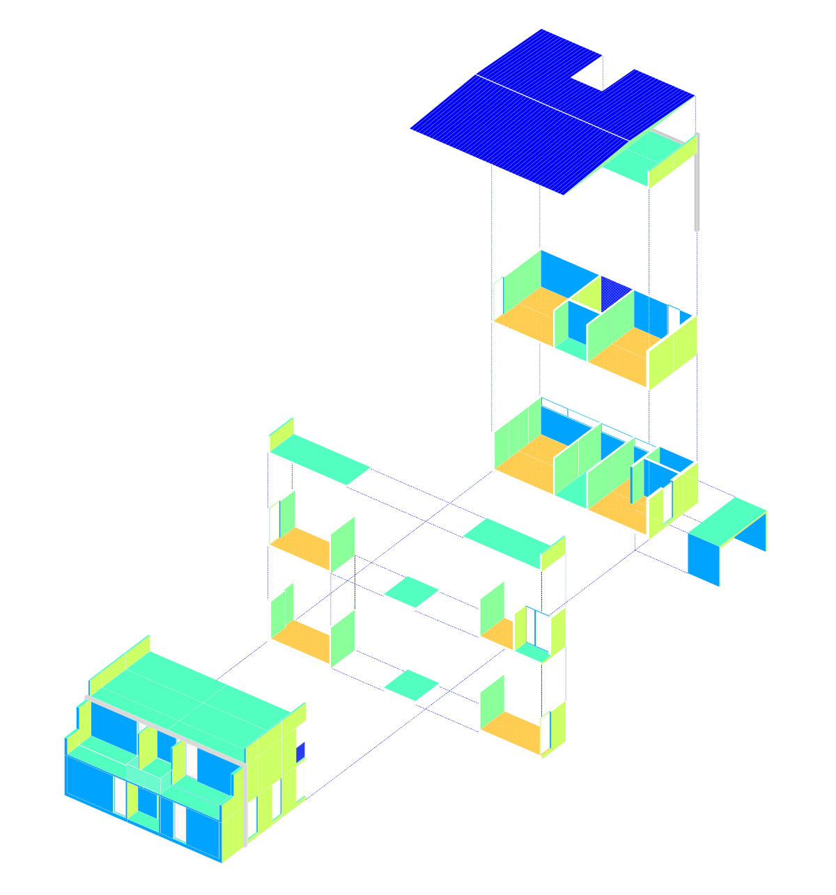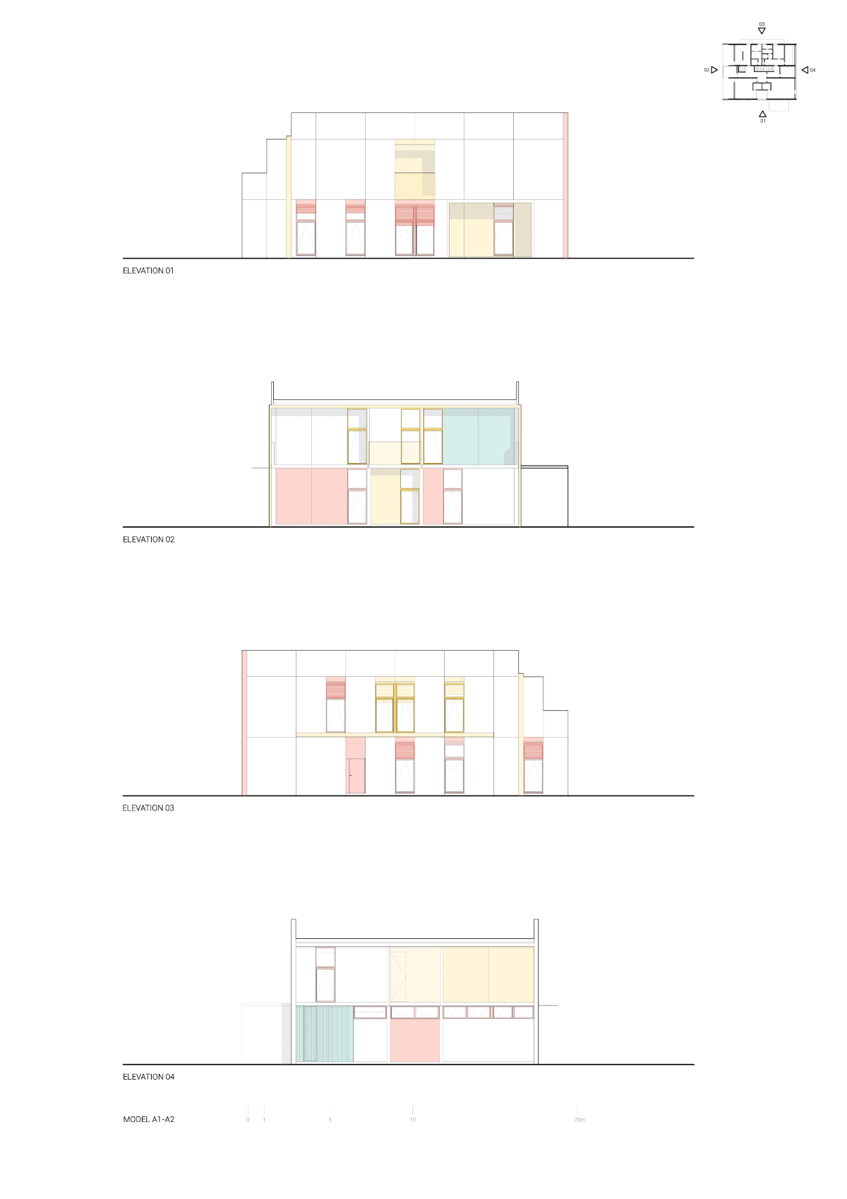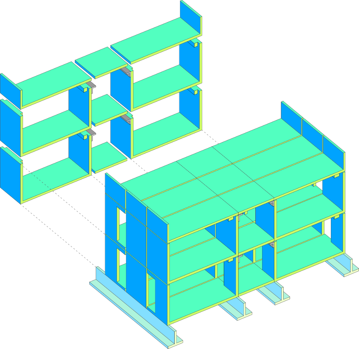 The proposal is based on the overlapping of structural modules in reinforced concrete, with a “U” section, shaping the building’s surfaces. The choice of this material is linked not only to the modular configuration but also to the requirement evident in the competition program to ensure solutions of high and proven durability and low maintenance.