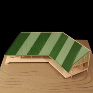 The Black Pavilion is a polyfunctional, flexible, site-independent and rebuildable wooden structure. The pavilion was built in Studio 1 at the German Academy Rome Villa Massimo 2022. It has been exhibited and used for various exhibitions, including Villa Massimo’s ‘Studi Aperti’, Open House Rome and ‘The European Pavilion: a three-day artistic event in Rome’. In the studio, it was subsequently used as habitable furniture until the structure was moved to the Villa Massimo park in 2023, where it serves as a meeting place for interdisciplinary exchange and collaboration as well as a retreat. In the summer, it will be part of the Villa Massimo Art Festival and a music festival at the Gasometer in Rome.