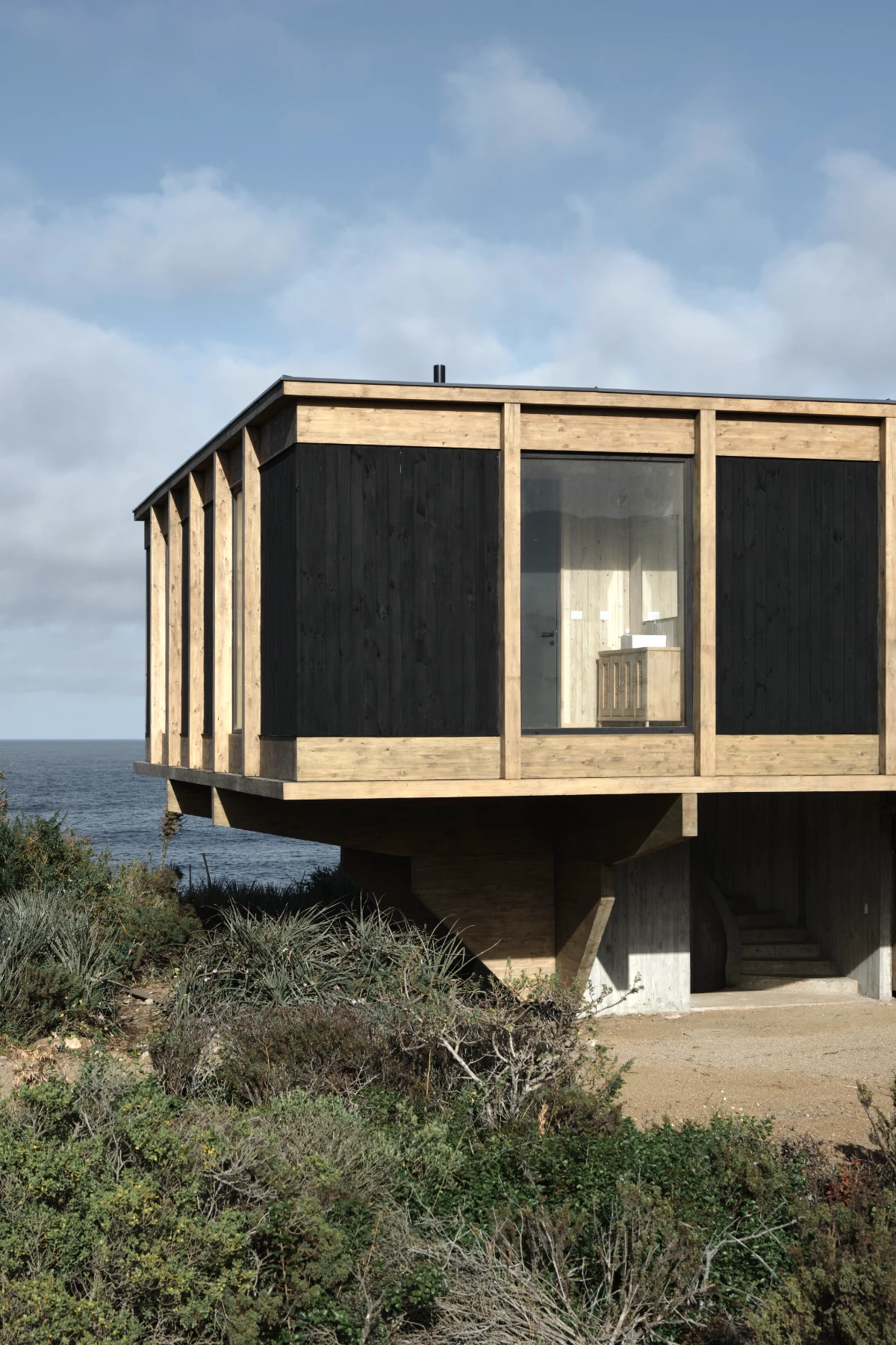 The project is located along the coastal edge of Punta Hueso, in the Coquimbo region of Chile—an environment characterized by rugged shorelines, rocky outcrops, and the low-to-medium height vegetation typical of the country’s “Norte Chico” zone.