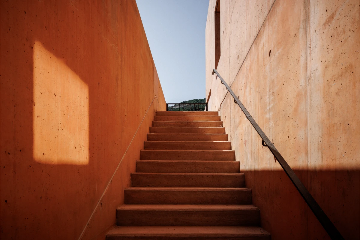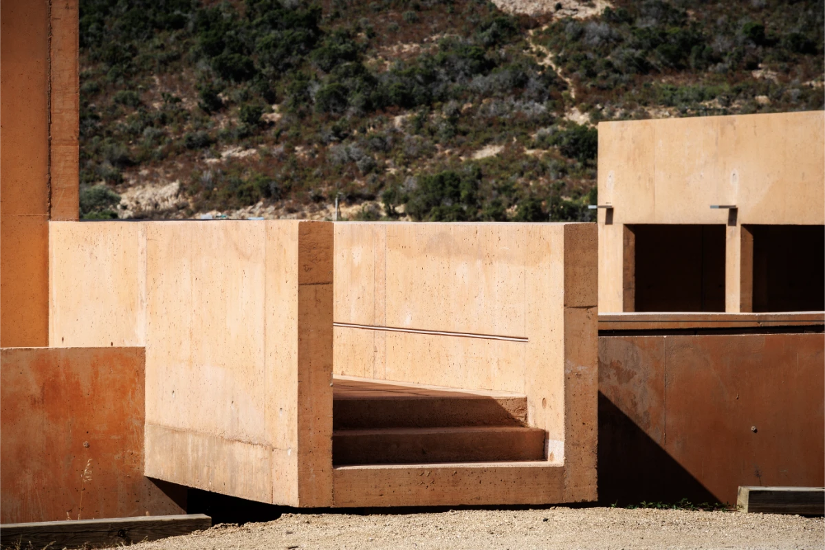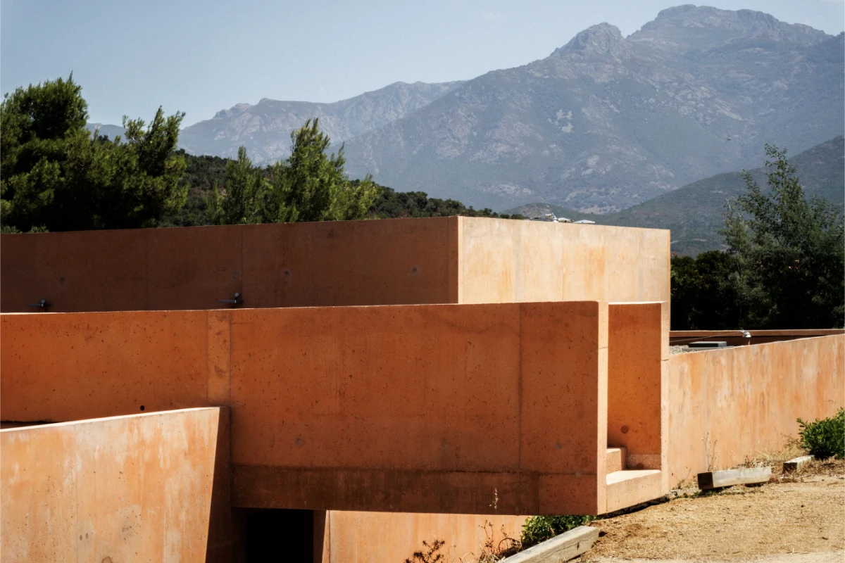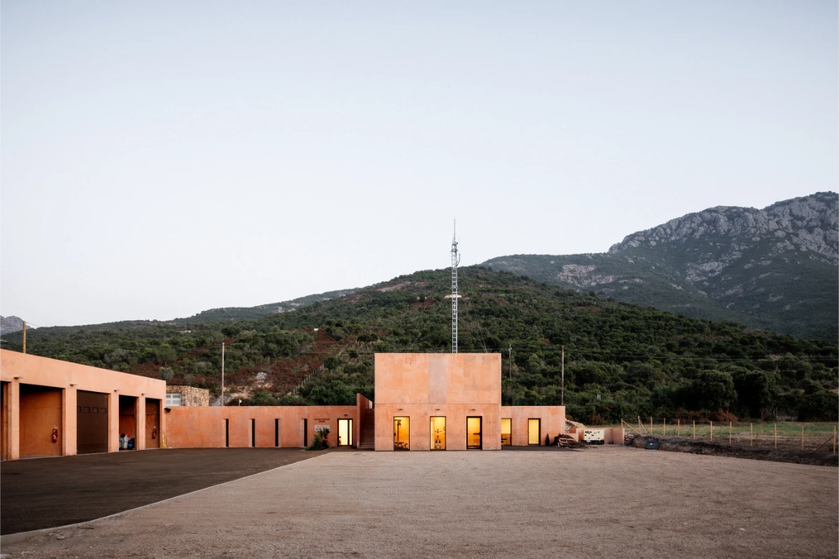 The landscape integration guided the search for plasticity. The sloping topography allows for a semi-embedded building, reducing its impact on this remarkable site. A work of material, here tinted concrete in the mass that takes on the colors of the site’s minerals (rhyolite and red pyrite), contributes to the integration and affirmation of the building. Like the rock that composes the landscape, the concrete is sculpted in the mass to offer users and passersby, residents, and visitors, an integrated, functional, and identifiable fire station.