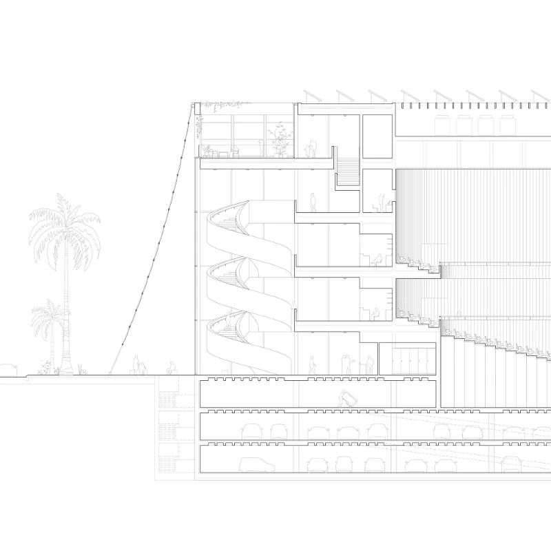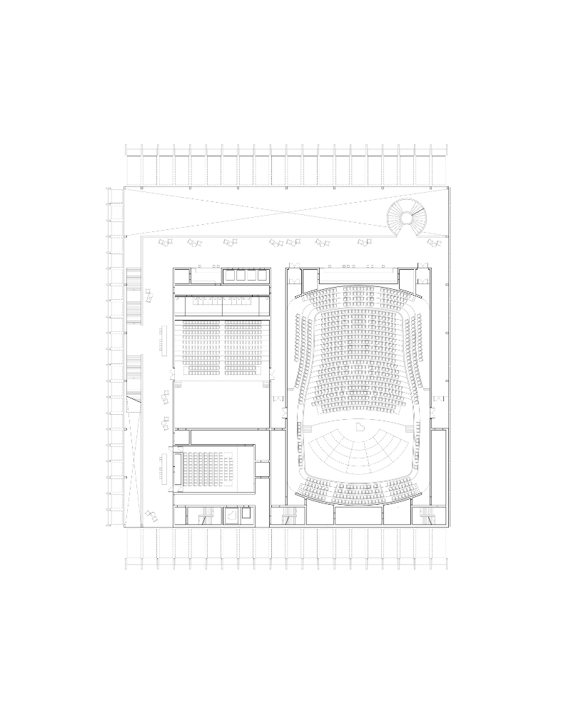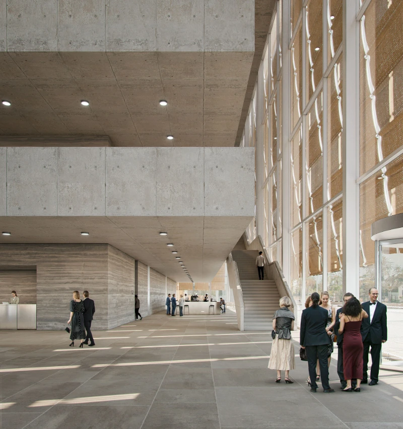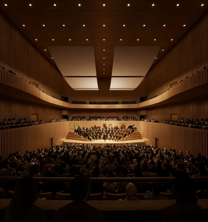 At ground level, the project gives the city back to its people. Streets soften, thresholds dissolve, and a new urban agora emerges—shaded, accessible, and alive with social exchange. Inside, spaces unfold intuitively, balancing public experience with operational precision, while performance halls at the heart of the building offer acoustic excellence and immersive encounters.