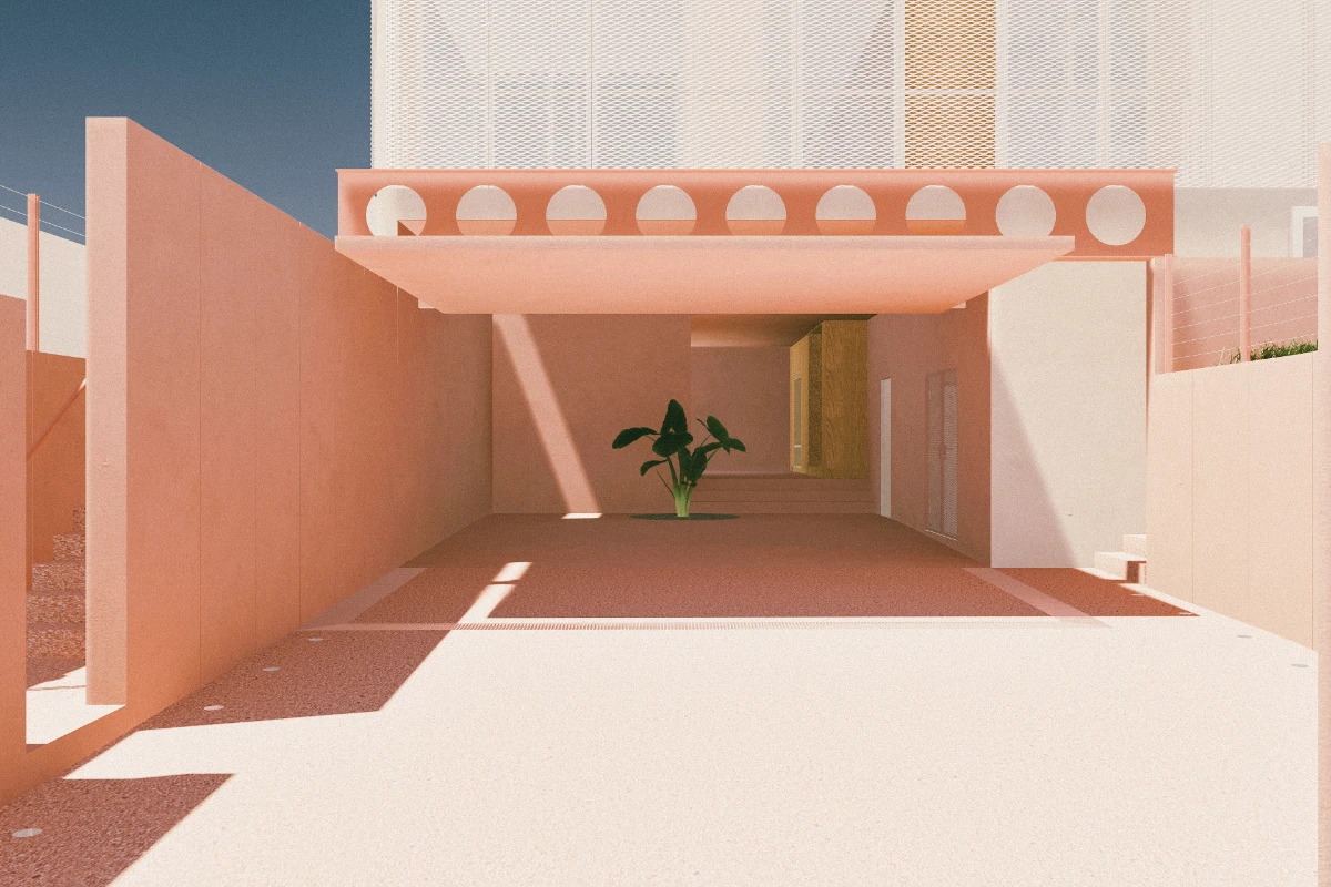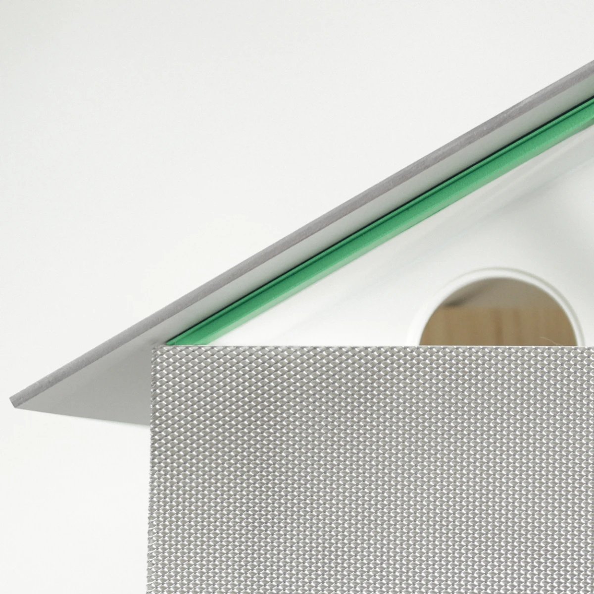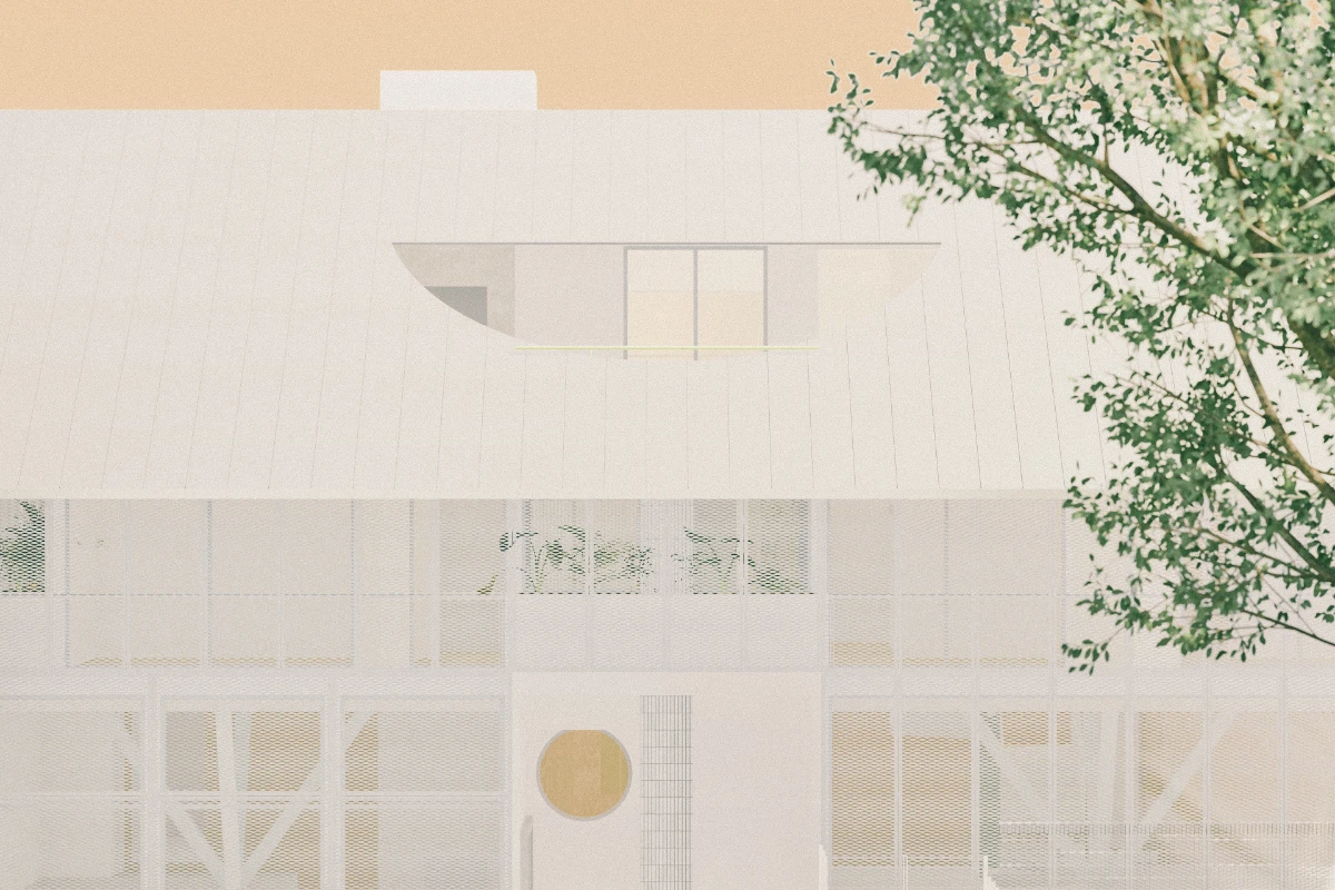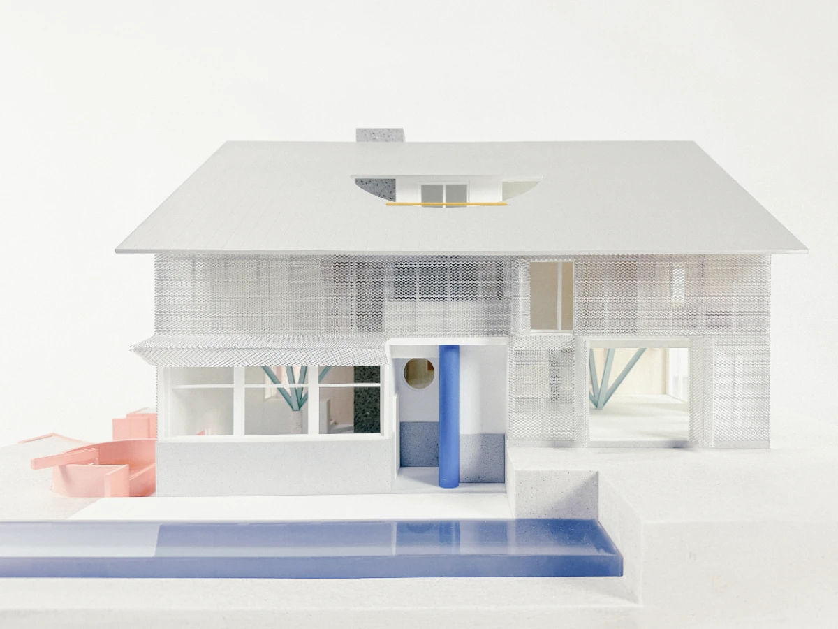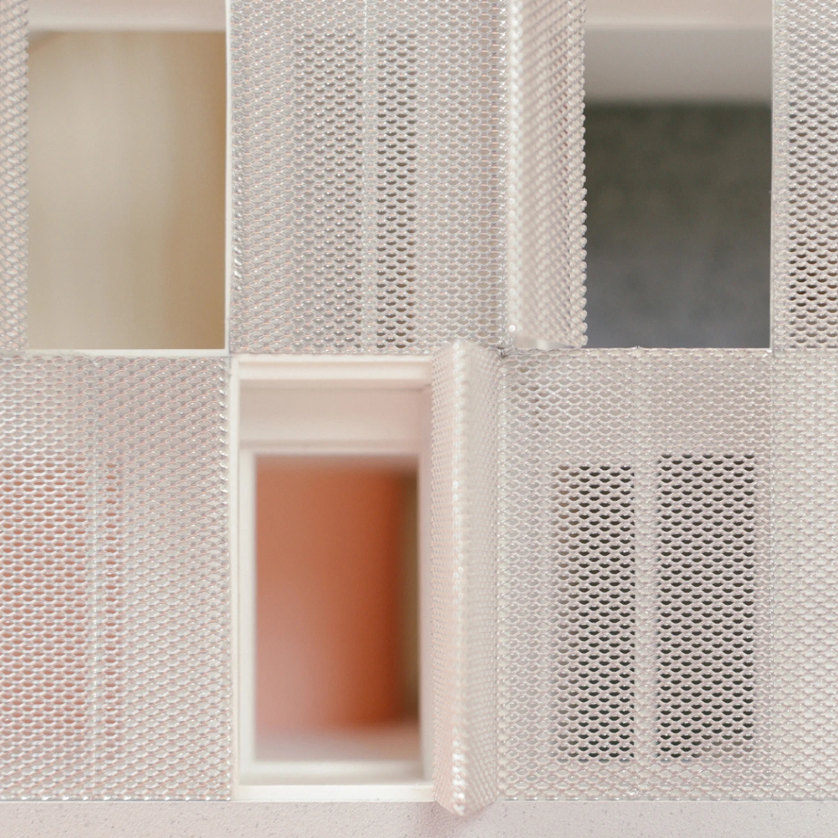 A mesh facade simultaneously effects abstraction and exposition. It frames the living space as a pure white box but also folds away to reveal a layered envelope of systems to modulate the unwavering tropical heat.