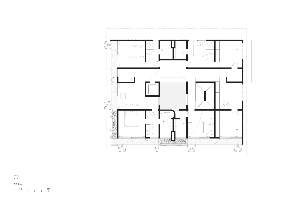 House Shaped House The architecture of the house manifests two fundamental considerations in contradictory opposition. The first is an aspiration to contend with the critical issues of domestic spaces in contemporary Singapore: affordability, aging in place, multigenerational living, and shifting social paradigms among others—issues that an idealistic young architecture practice might indulge in. The second is the intense economic pressure for the house to play a dutiful role as luxury real estate, since the land it sits on is very expensive. With its market value at stake, the house is subservient to expectations of a design “befitting” the well-defined asset class of a Singapore bungalow: oversized bedrooms, ensuite bathrooms, expensive veneer, etc.