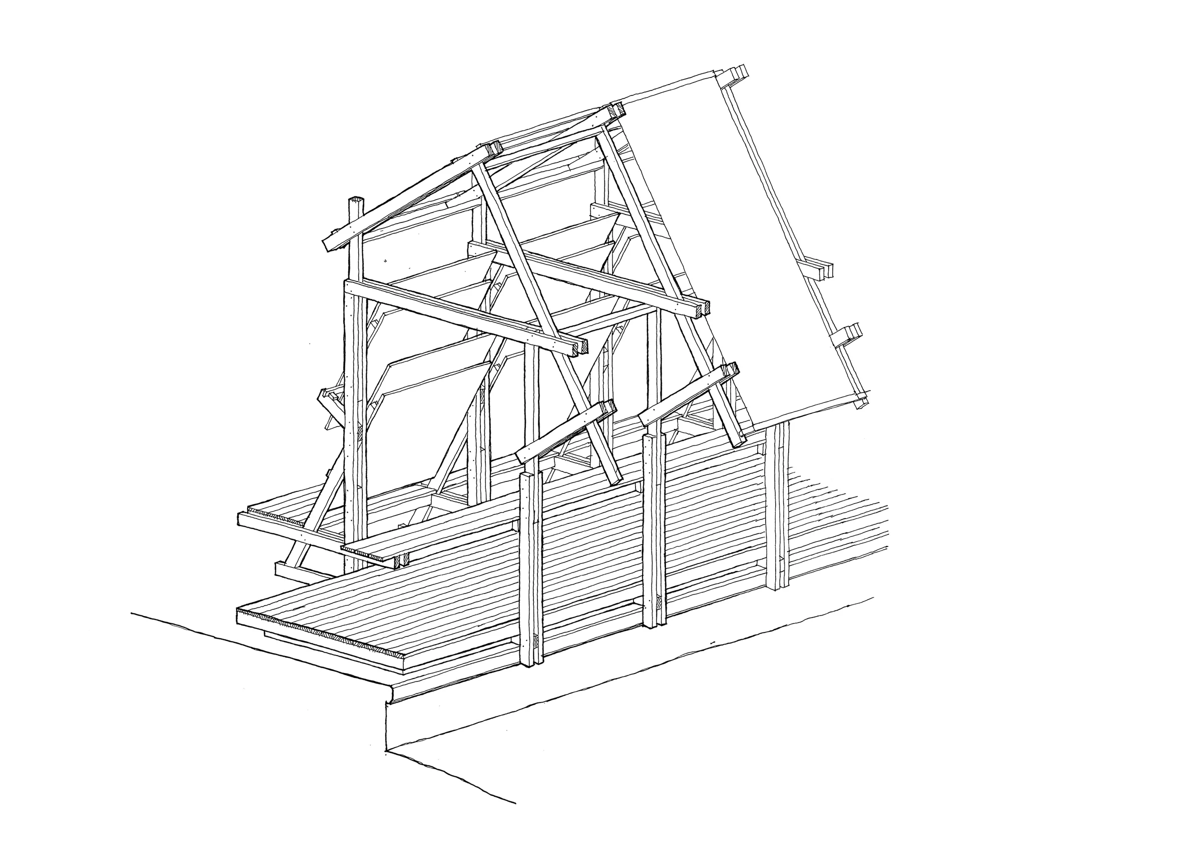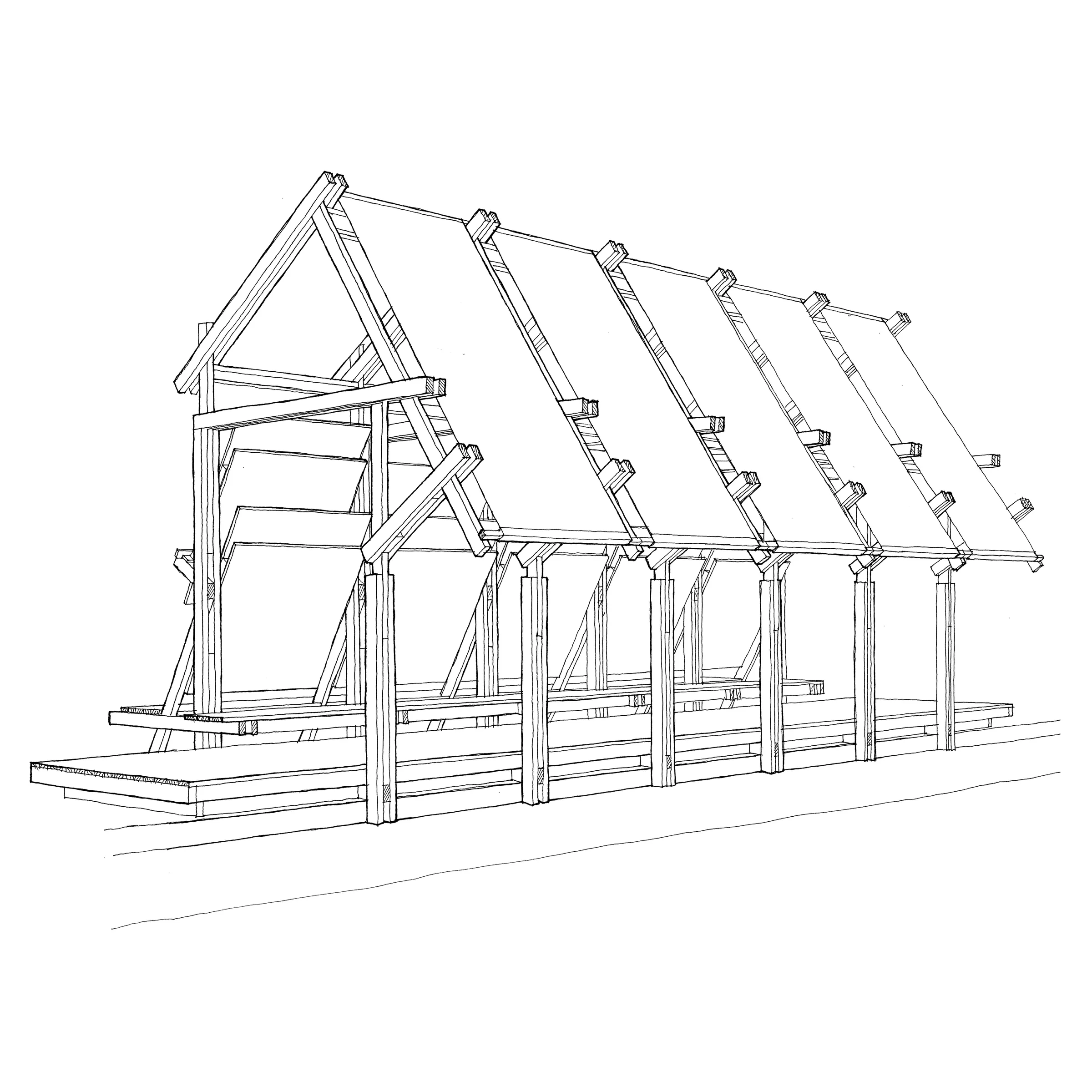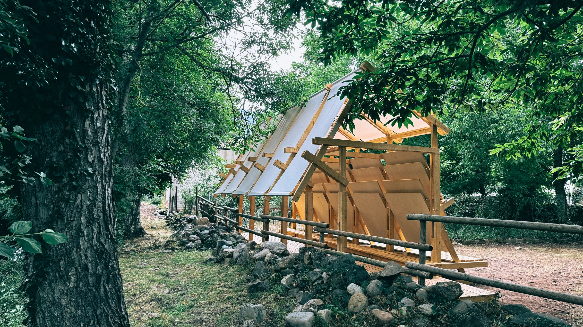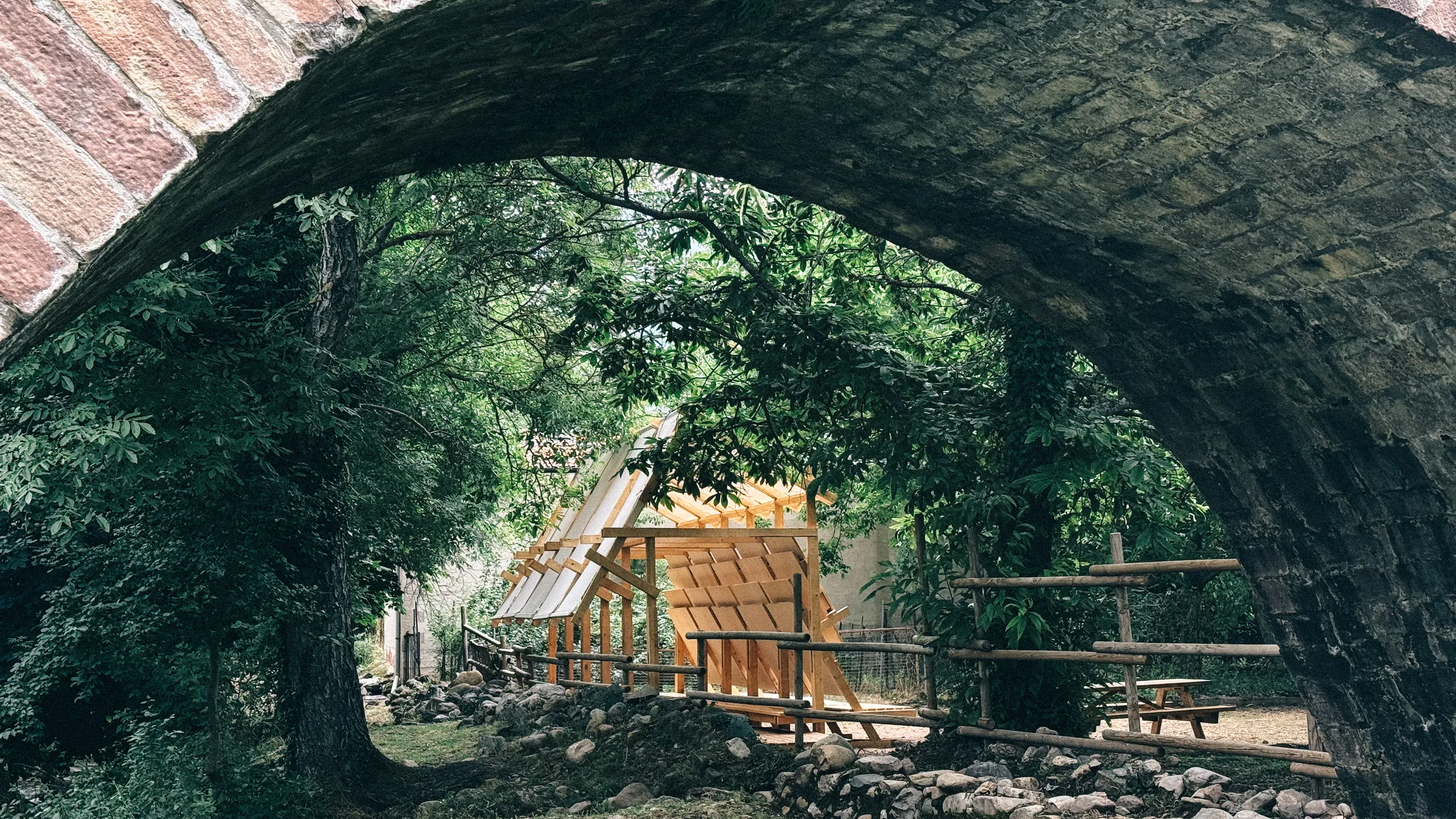 The installation proposed a handmade shaded wooden space that encouraged both environmental responsiveness and social exchange — pausing, learning, contemplating, and dwelling at the threshold between the man-made city and the natural environment.