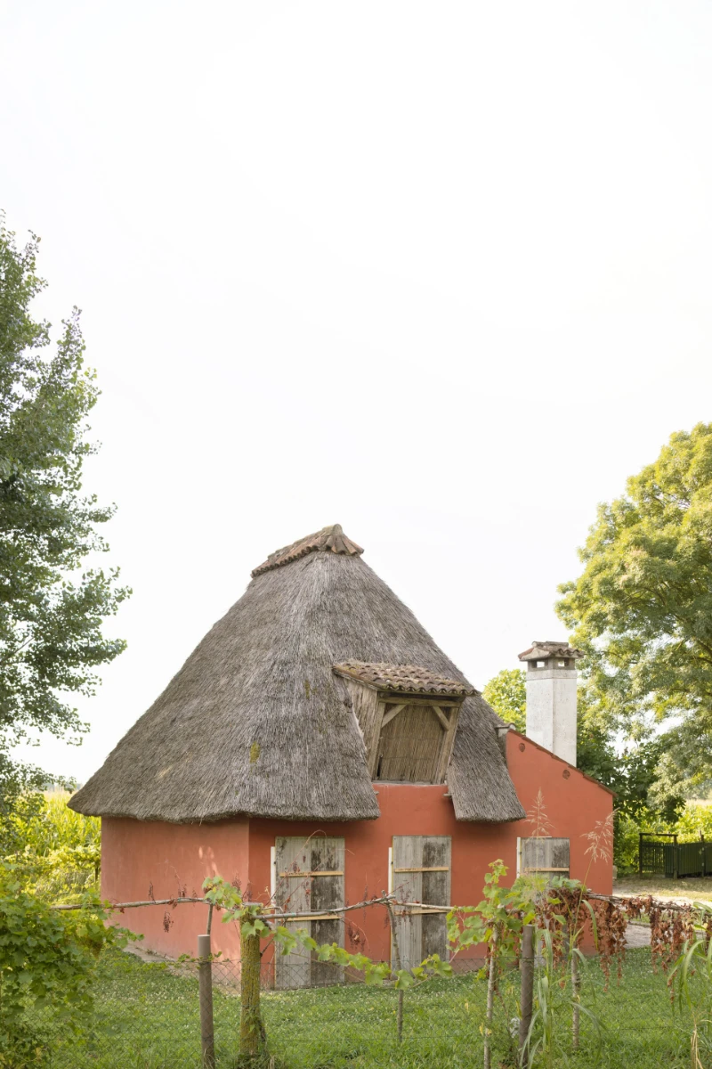 the vernacular dwelling of farmers and fishermen, known for its distinctive thatched roofs.