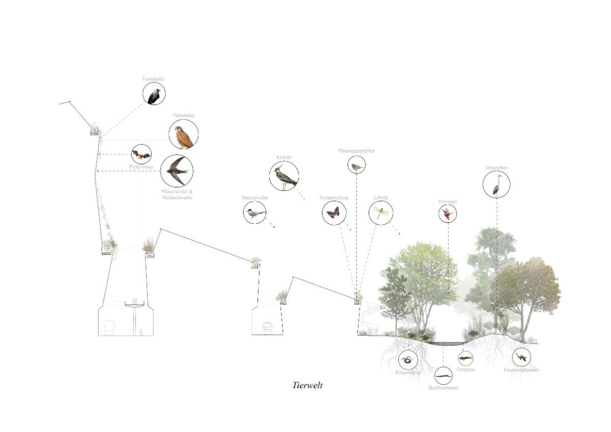 Given its substantial footprint and exceptional location along the Limmat River, the project integrates public accessibility to prevent isolation. A raised footbridge enhances connectivity and gives the site an educational function. Informational panels along the walkway provide insights into the waste-to-energy process and water purification techniques, fostering awareness of environmental sustainability.