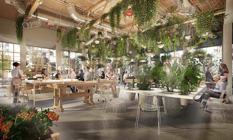 Creating a green ground condition: A communal vegetable fresh market, shop, canning and cultivation.