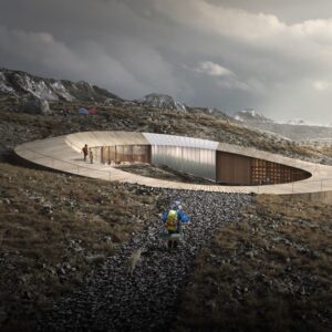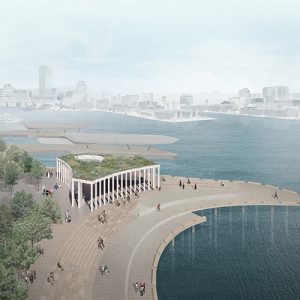 Proposal for a new log driving museum and marshland center in Fetsund, outside of Oslo. The building consists of four large volumes facing the river Glomma, with integrated courtyards in-between. The buildings are connected by a corridor pulled backward from the river, to generate a natural flow, and to let nature in.