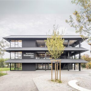 On the ground floor, on the other hand, where the more public functions open to the city are located, the façade recedes and becomes a portico, a reference to the archetype of historical educational architecture with its “V-shaped” pillars inspired by the geometries of the Tuscan “mandolato”. These do not only fulfill a structural function but, thanks to their soft design at the base, are also configured as “outdoor furniture”.