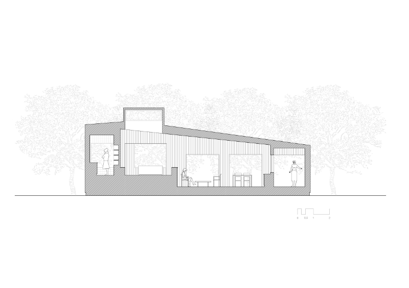 To the north there was a wooded area, which became the landscape towards which to open the main views. Accordingly, the project is a single horizontal space on the east-west axis that opened up with large openings to the forest.