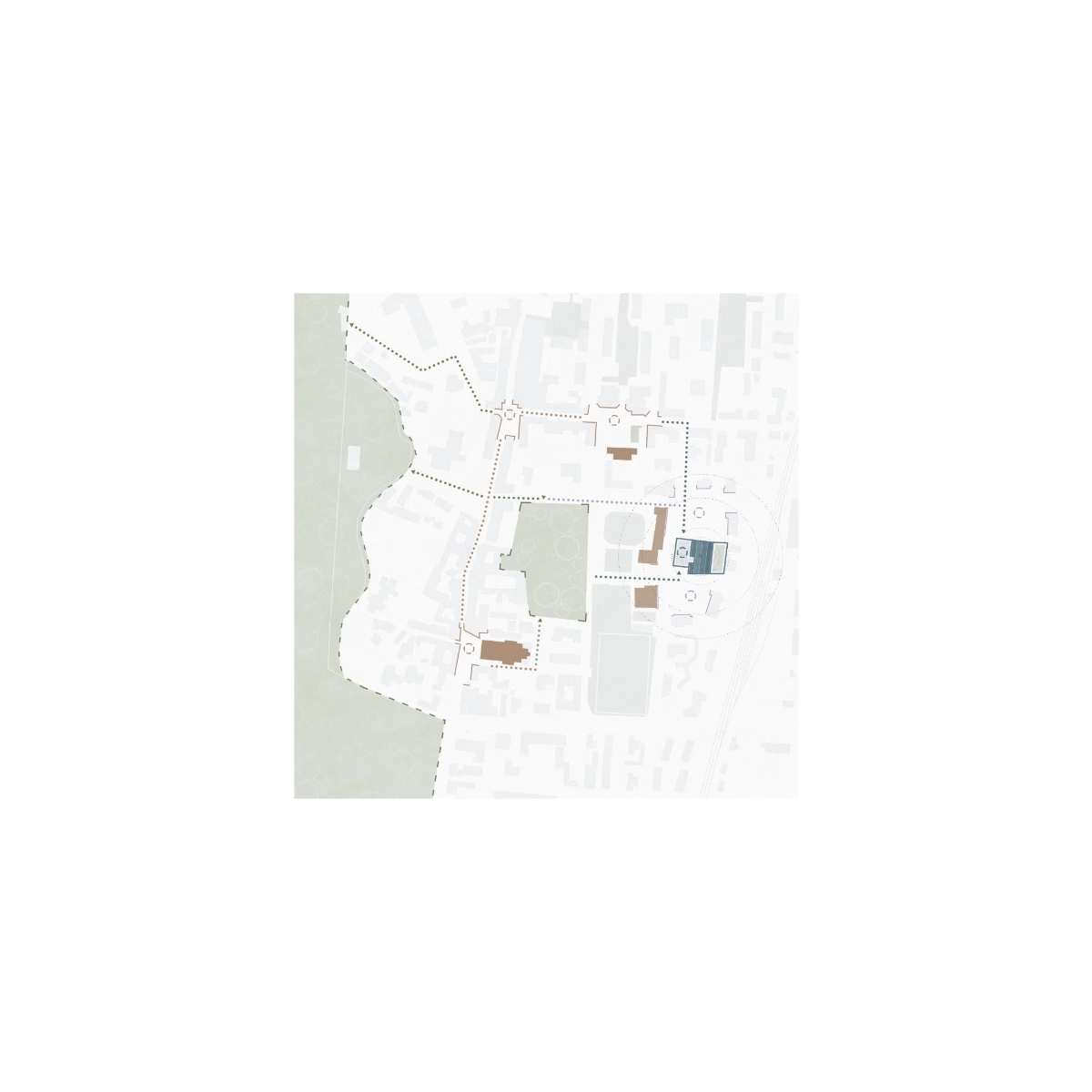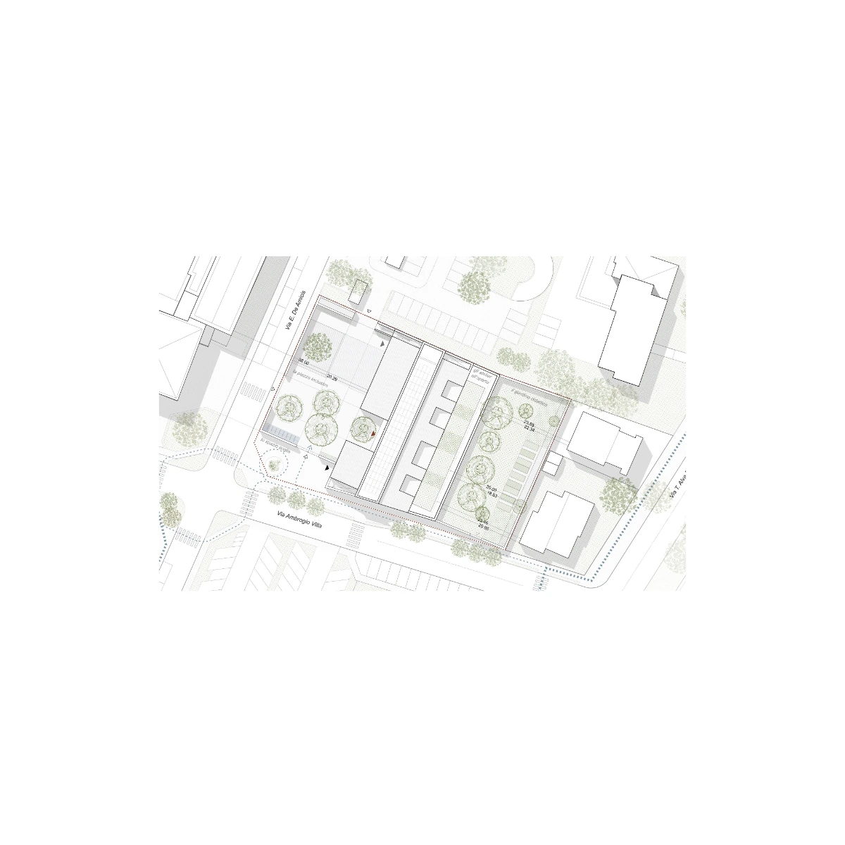 At an urban level, the site takes on the role of a piece with great relational potential thanks to its strategic position “in-between” different public spaces: the oratory to the south, the middle school to the west, the town hall and the square to the north, the parks and the squares to the east, the station and finally the two areas currently aimed at parking to the north /south.