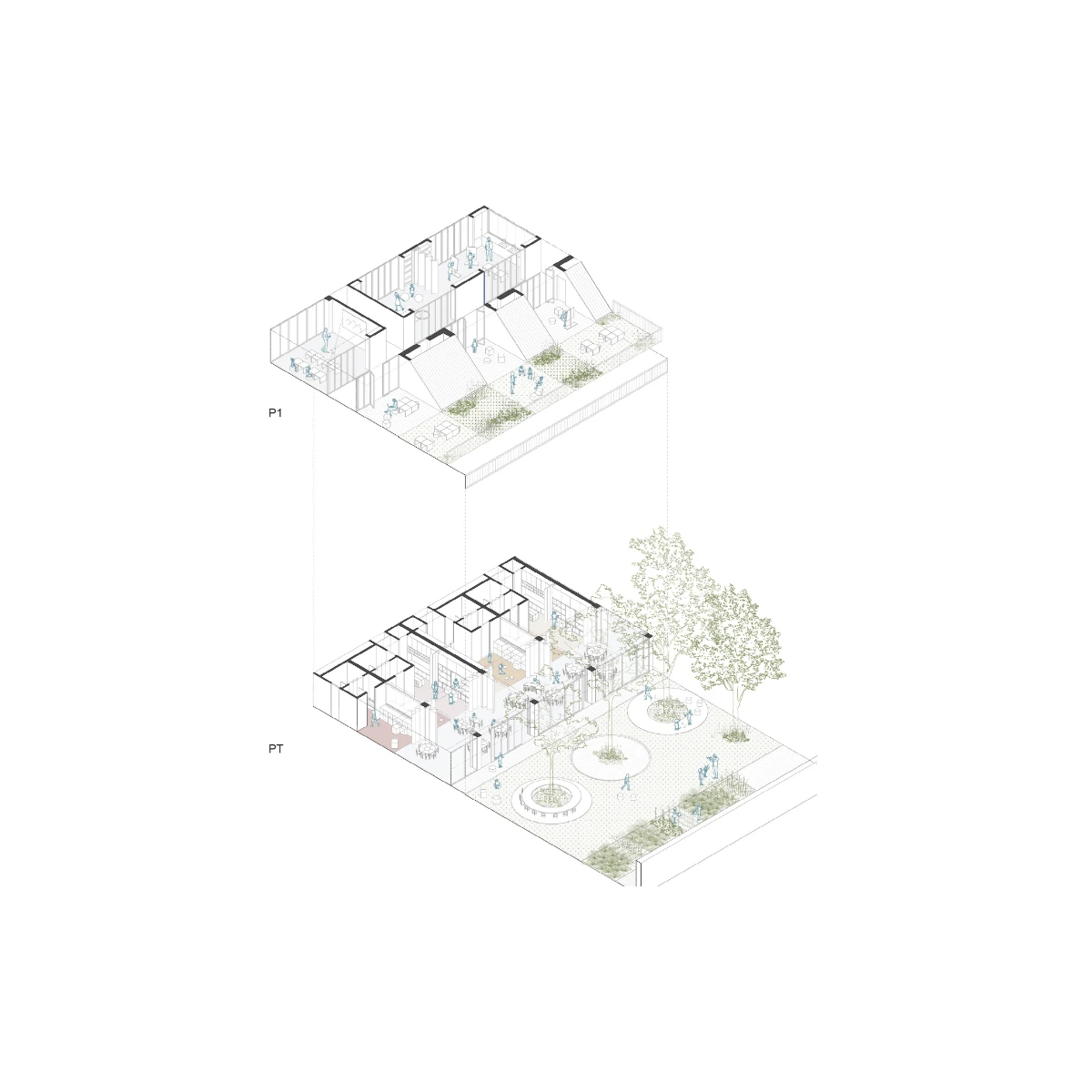 The project is generated in the attempt to exploit and amplify this relational potential, also providing for the possibility (for a possible future) of reorganizing the car parks into an integrated system of squares. It is thus divided into two unitary elements: