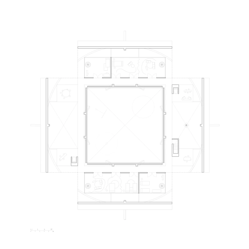 The Big House is a cloister, a Casa Patio. It could not be a different type. The central courtyard is its heart; the main collective space where anything can happen. The kitchen and dining are huge and will be used for many more things than eating. Each person has its own single room, which are not tiny, because we do not believe in tiny spaces.