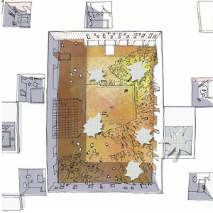 Behind the veil, this shifting perspective and the vertical stratification of program accentuate public versus private relationships. This forms the central discourse on the introverted approach of the home.