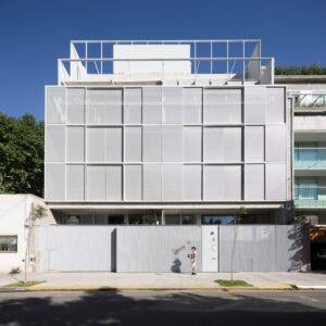 Situated near the historic “Taiwan-Renga” (台灣煉瓦) brick kiln from 1899 that prospered this working-class district in Kaohsiung, Taiwan, the Veil House revisits this history by weaving a modern, tapestry-like façade utilizing floating clay bricks.