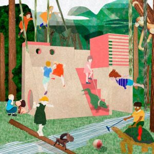 The necessary levelling of the terrain is used as an opportunity to integrate the first floor with the immediate context, and through four elements in reinforced concrete; a cylinder, a curved wall, the rigid core and pillars, the space is organized to support the wooden structure of the three upper floors.